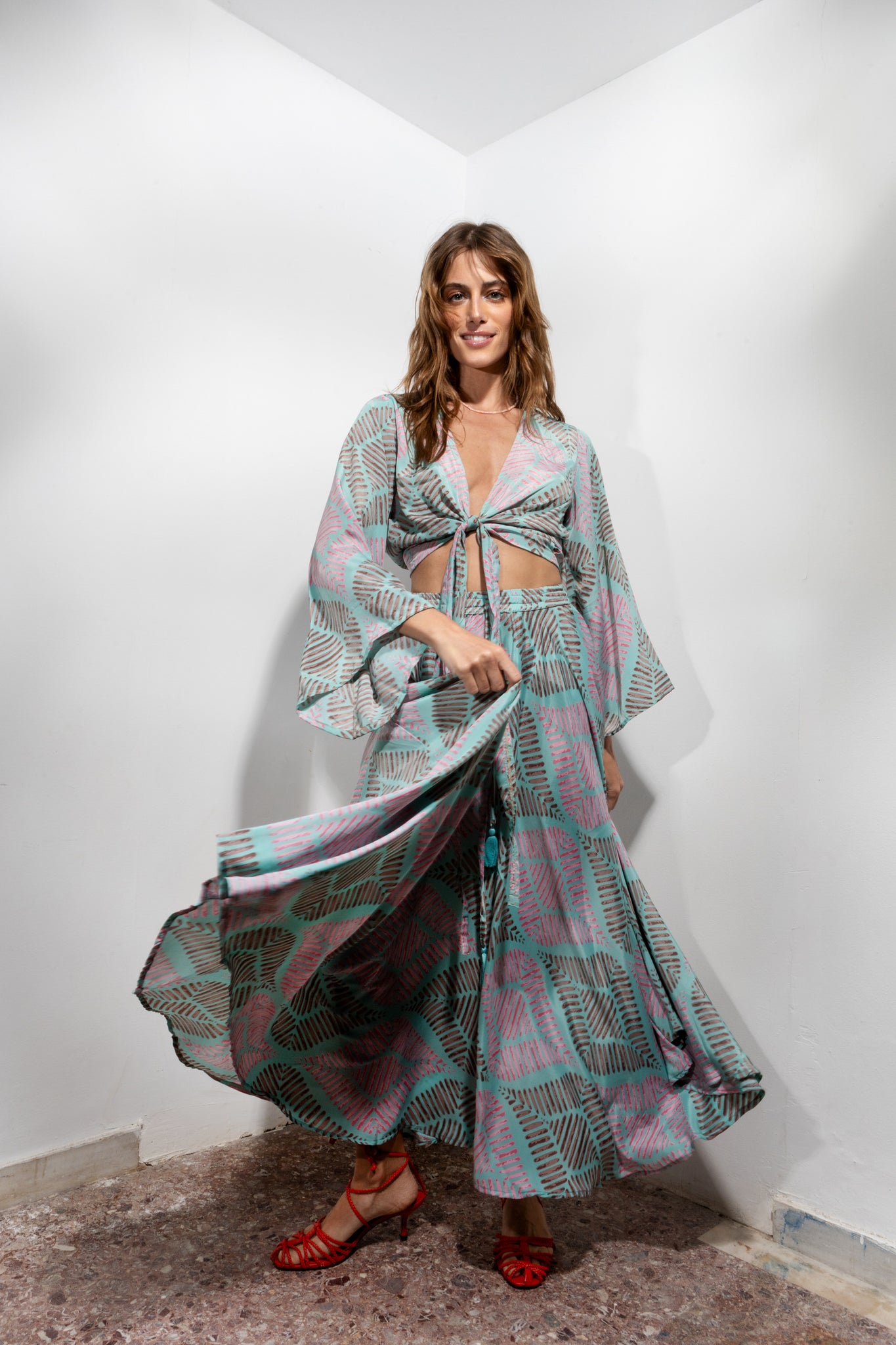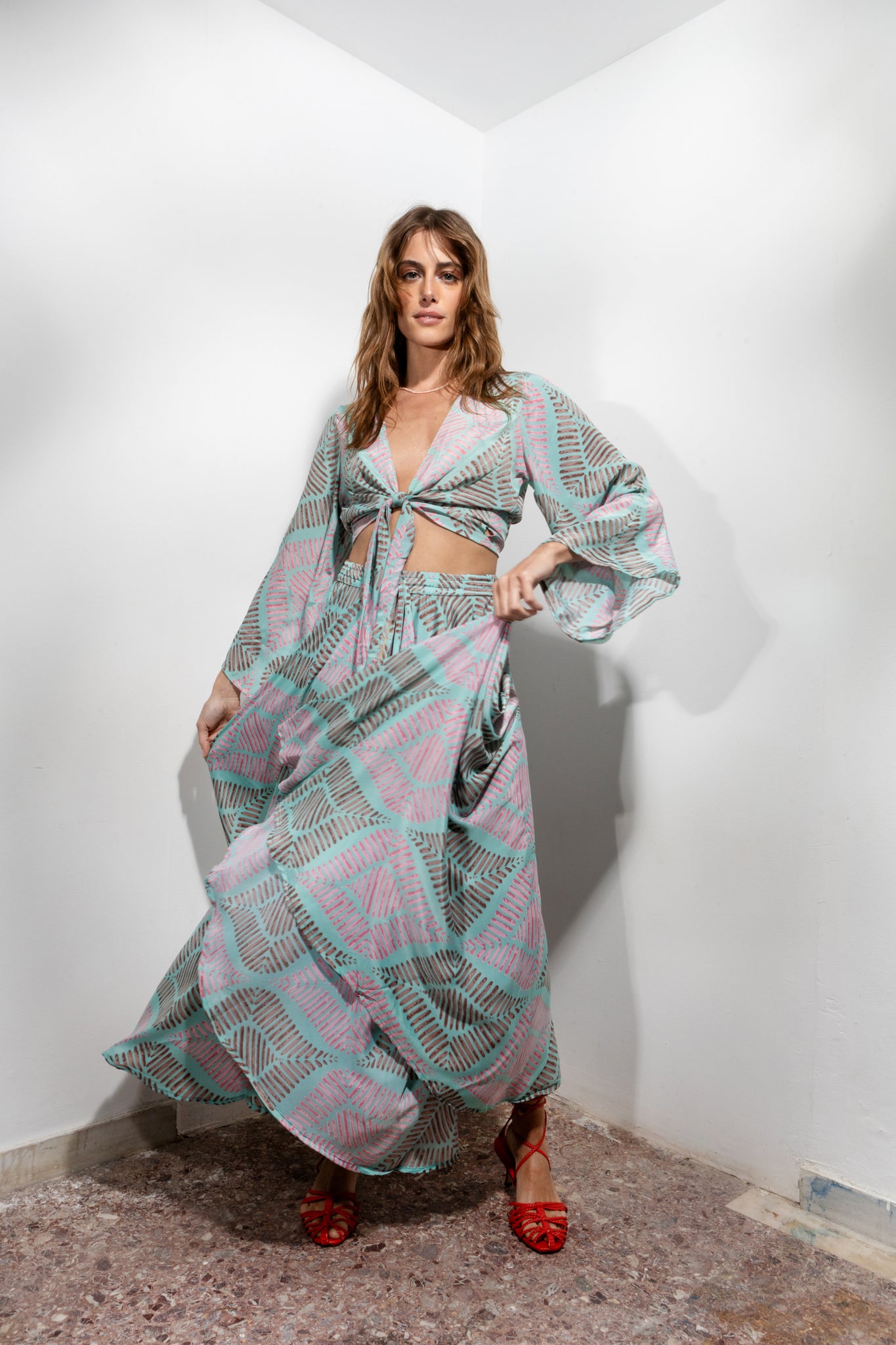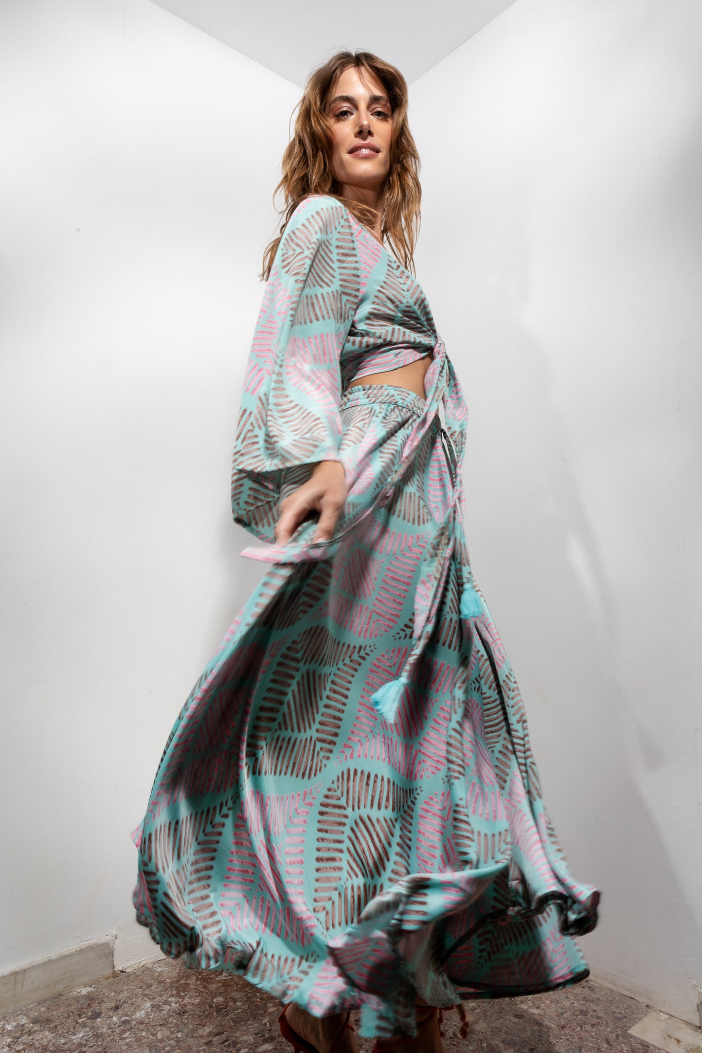 Long skirt with adjustable strings & waistband for a comfortable fit. Combine it with the "PG Tie Top" and create a unique set for your summer night outs! Wash carefully in cold water.