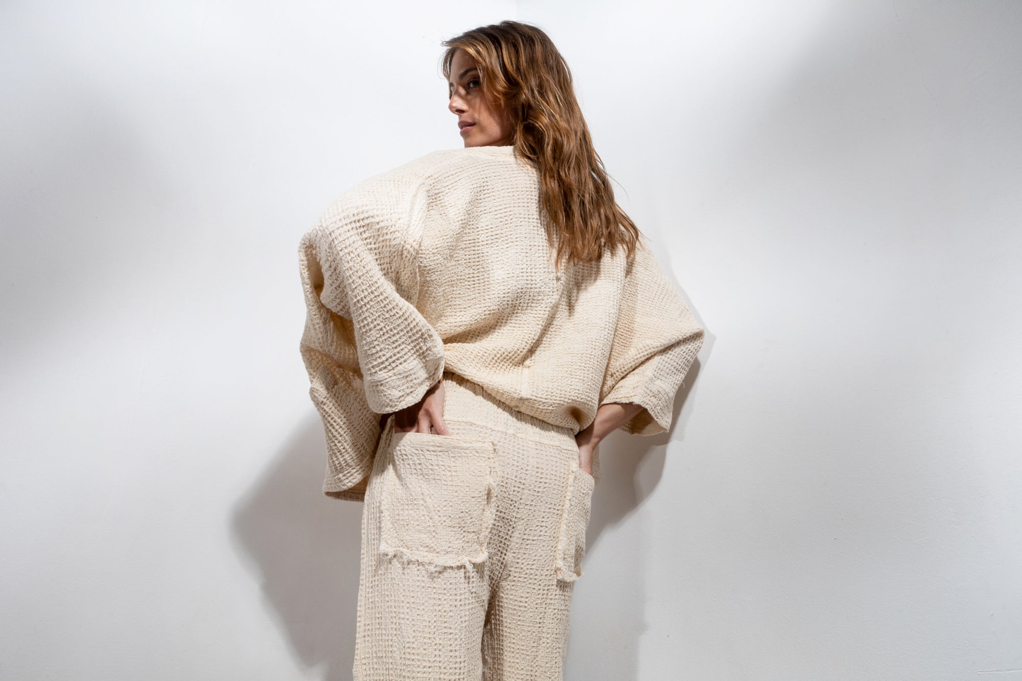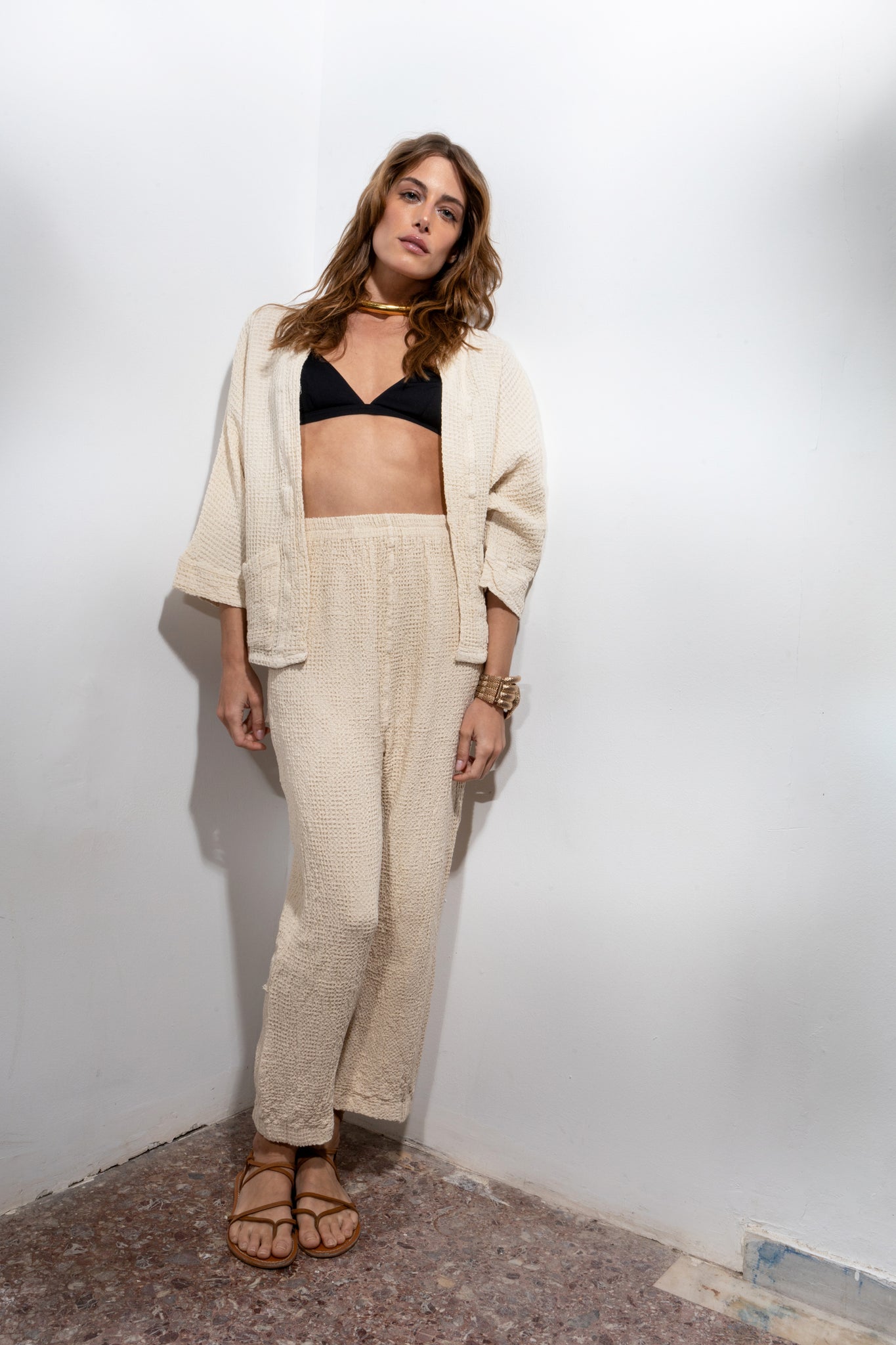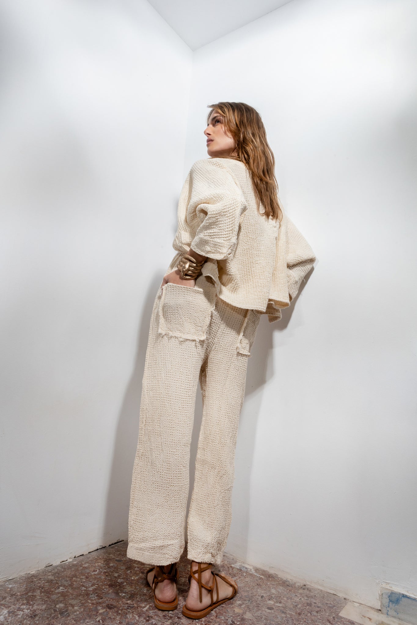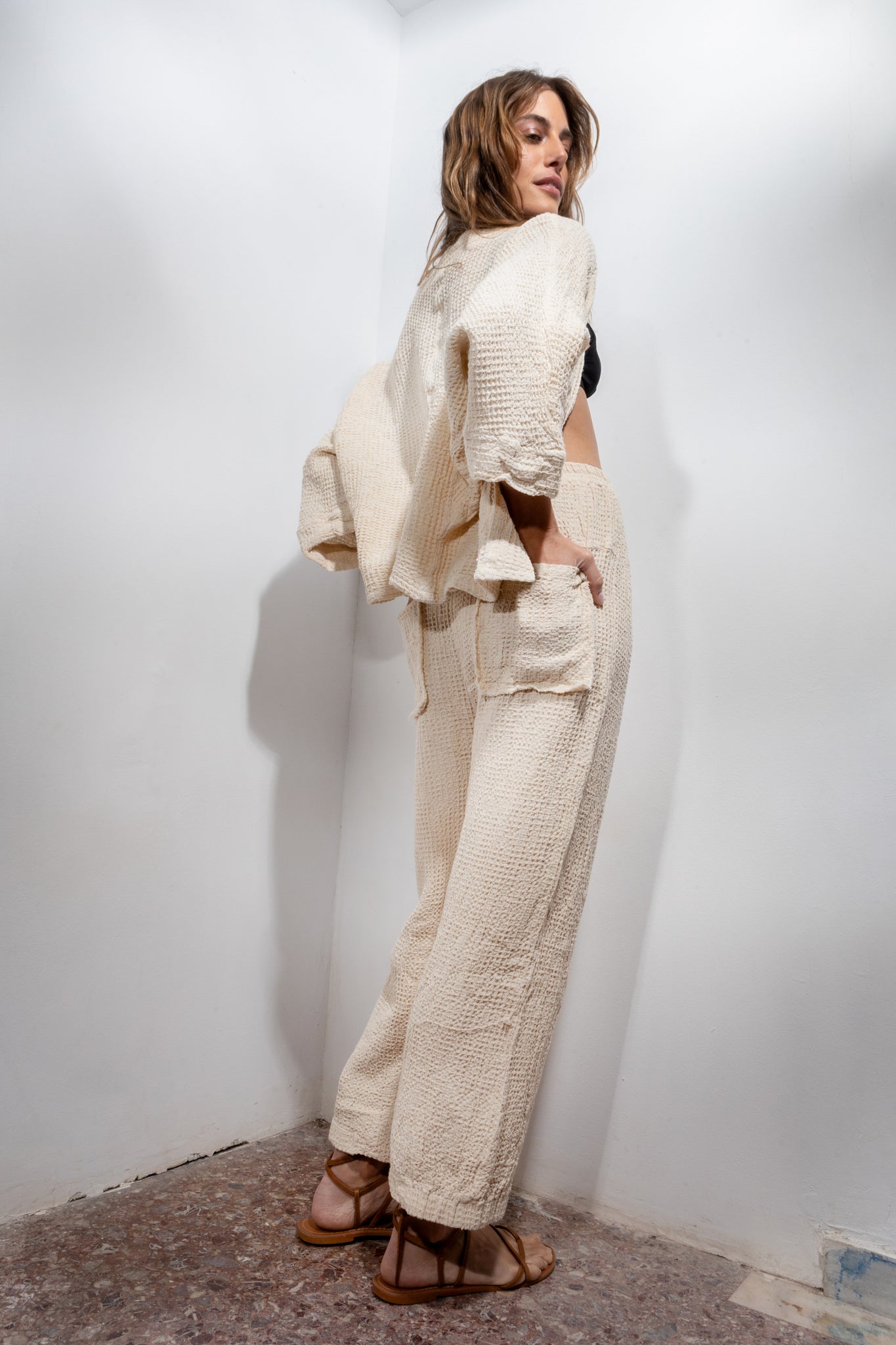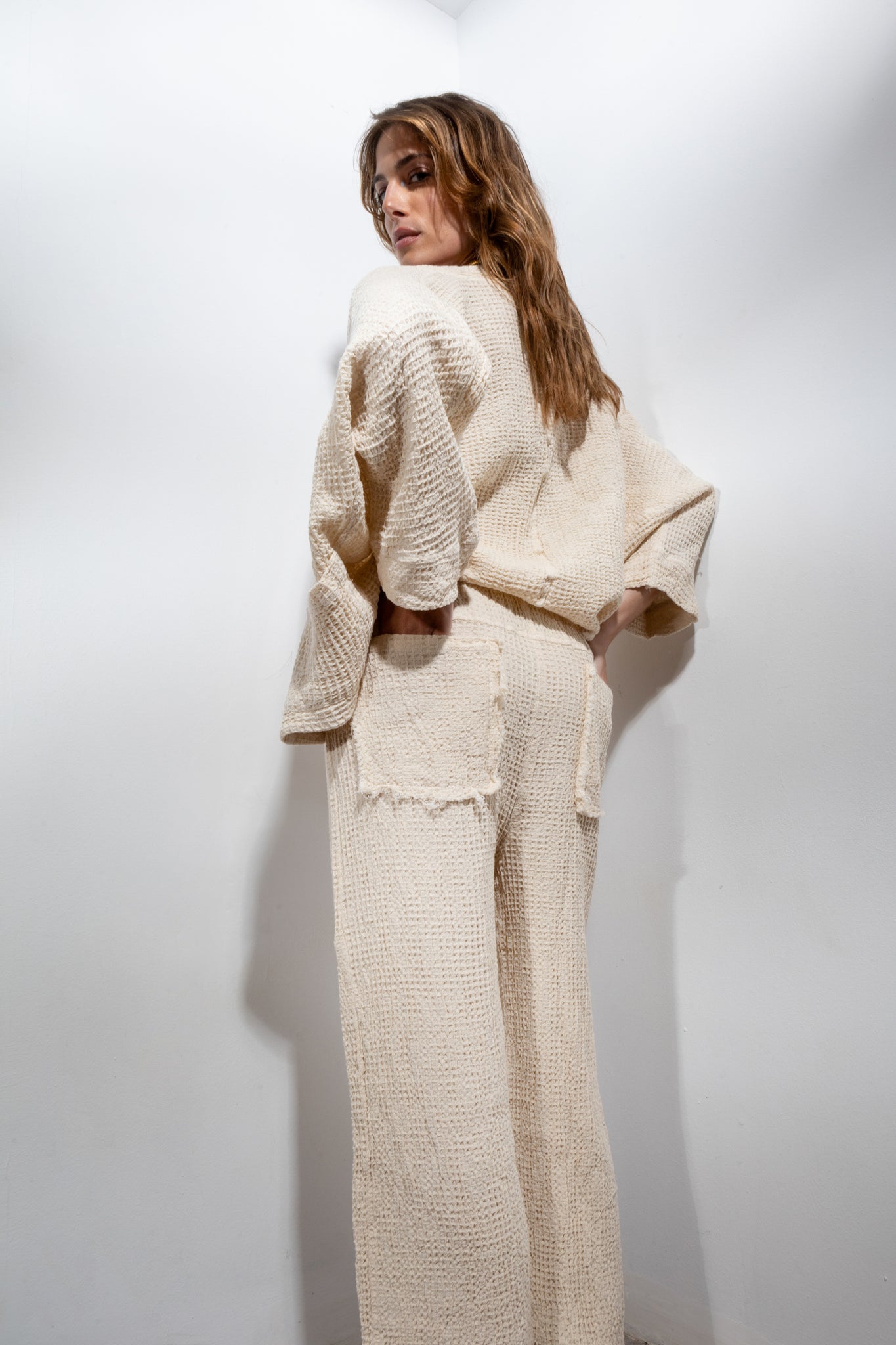 Summer knitted pants with back pockets. Ankle length and normal fit. An ideal piece for the most boho-chic looks!