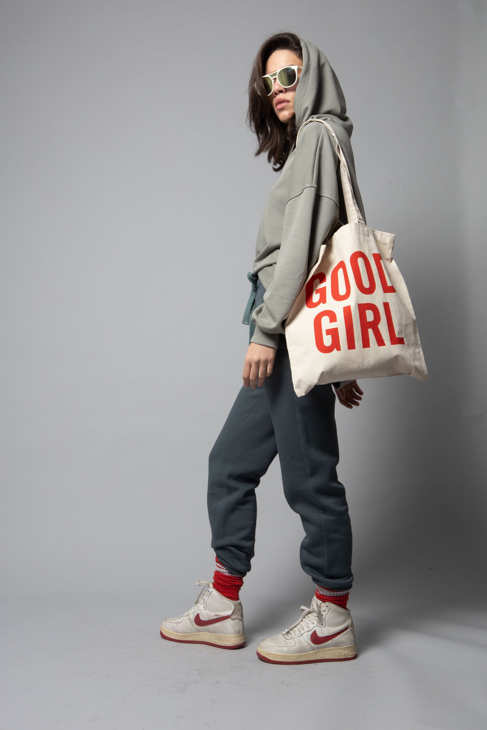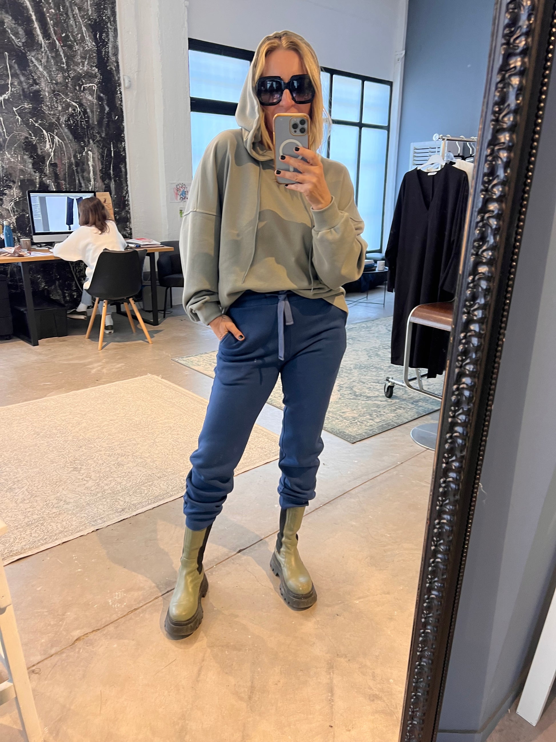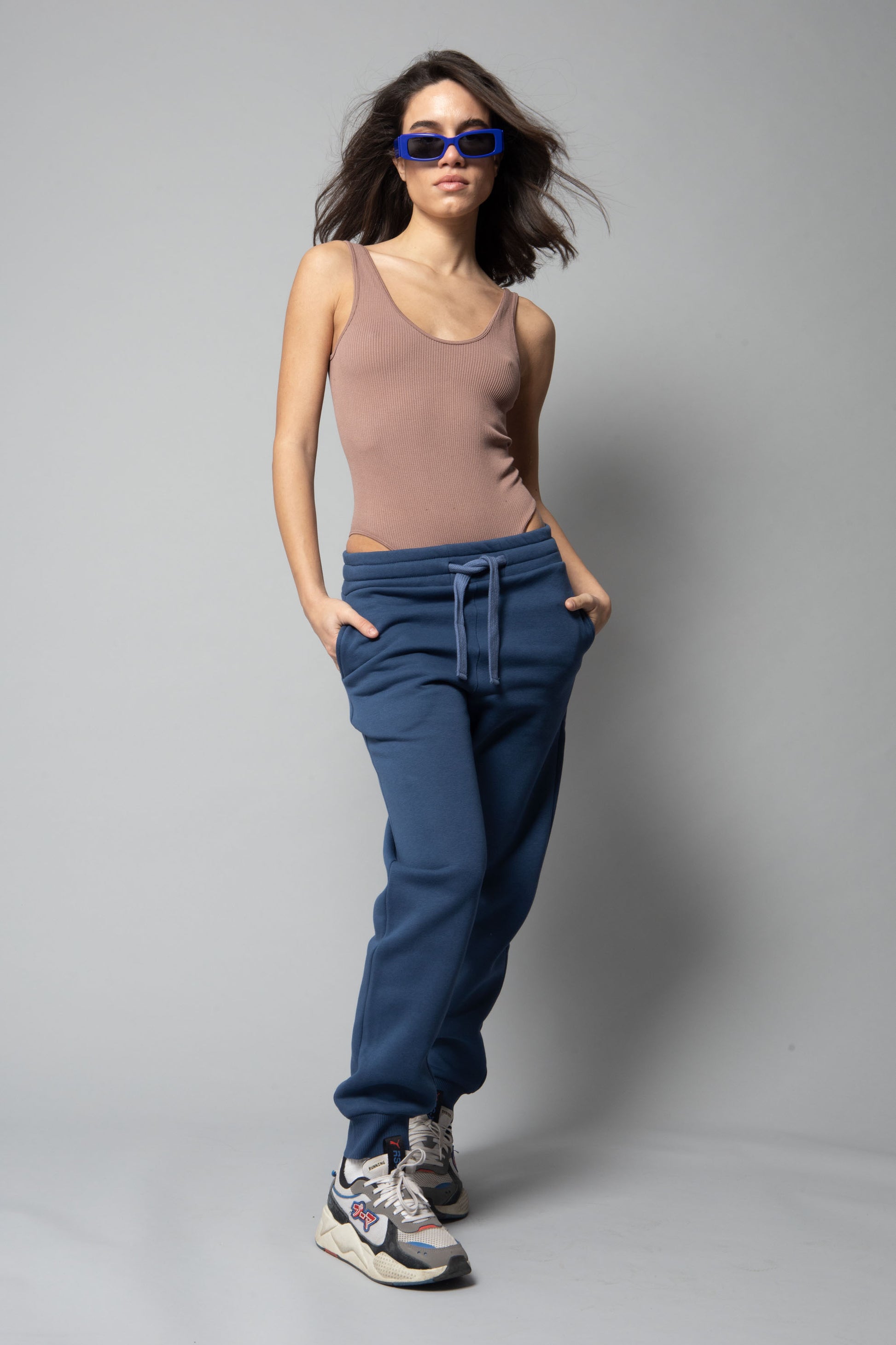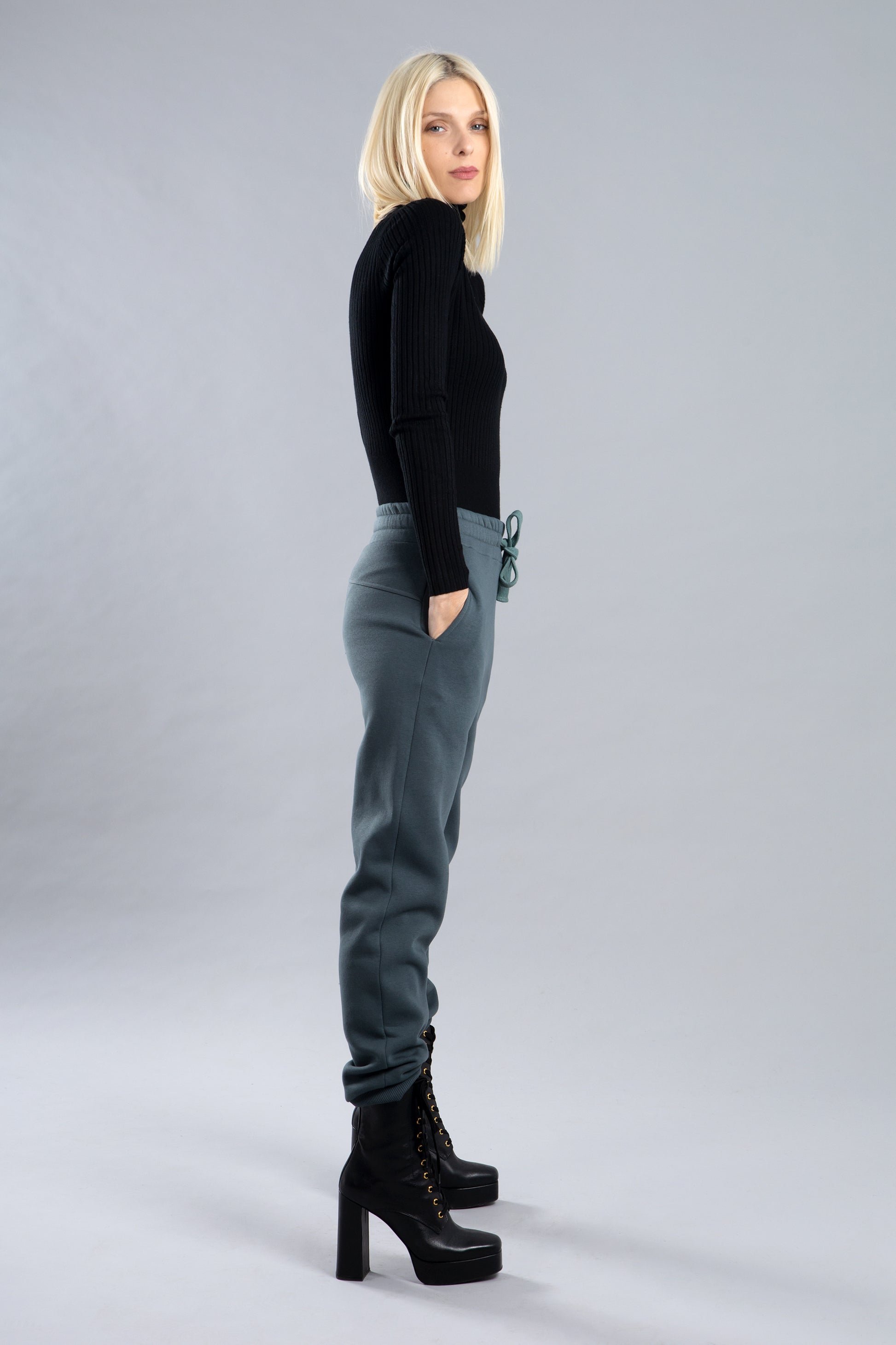 Ψηλόμεσο παντελόνι με λάστιχο στη μέση που προσαρμόζεται με κορδόνια, πλαϊνές τσέπες και λάστιχο στο αστράγαλο.