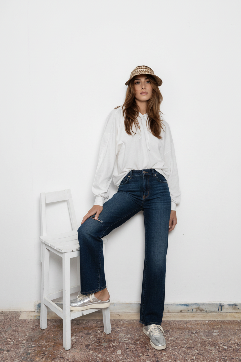 Φούτερ από λεπτό & δροσερό βαμβακερό ύφασμα, με κουκούλα που προσαρμόζεται με κορδόνια, μακρύ μανίκι και τελειώματα σε ασορτί ύφανση ριμπ. Το πίσω μέρος είναι πιο μακρύ από το μπροστά και τελειώνει σε σχήμα οβάλ. Άνετη εφαρμογή.